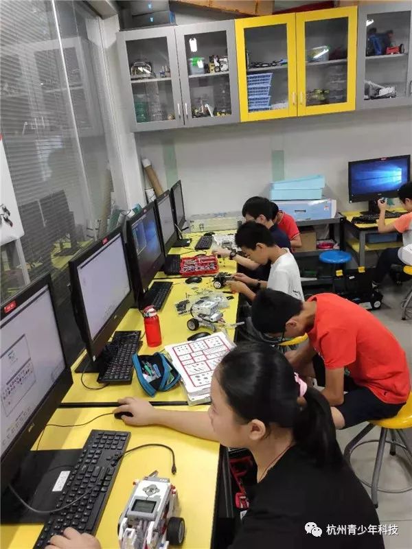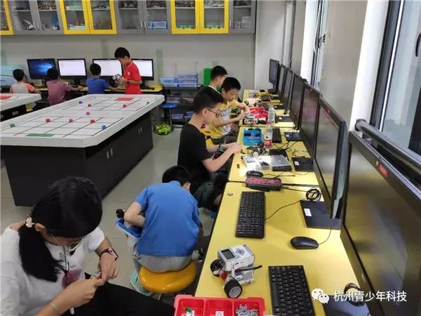 2019年杭州少年科学院机器人社团招新活动于8月11日在杭州青少年活动中心科体楼如期举行,87名孩子分成小学组、中学组、预备队员组,进行了理论考试和现场实践测试。