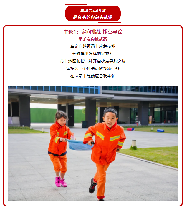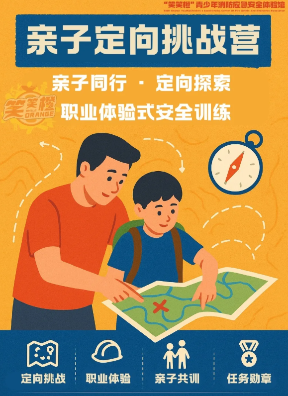 “笑笑橙”精心设计“亲子定向挑战营”,集定向运动、职业体验、亲子协作、安全教育于一体,打造沉浸式家庭安全实践课。亲子在趣味十足的安全大挑战中实践安全技能,提升应急反应与协作力,强化亲子默契,树立安全意识。
